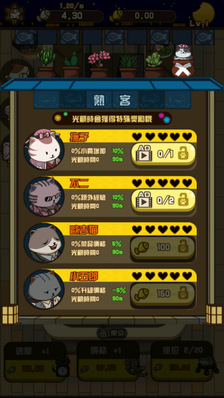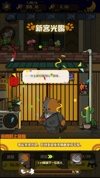 3.玩家在需要中还会遇到一些充满神秘感的客人,这些个性迥异的顾客都会随着玩家的挑战逐步的解锁,在此过程中你需要解锁强化自己的猫咪厨师,你要成为猫界的名厨并在挑战中壮大自己的深夜食堂,只有这样才能吸引更多的顾客,玩家要在其中解锁更多的菜品,还要为自己的猫咪顾客献上最好的料理。