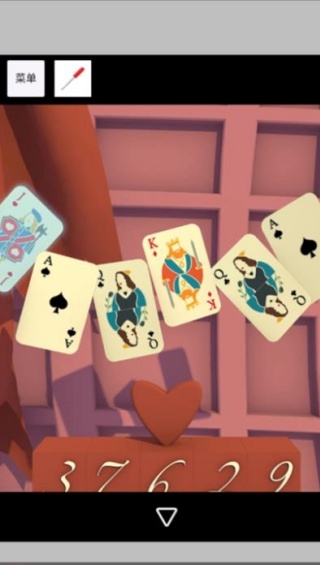 3、关注扑克牌的排列和下方的数字 “37629”,结合左上角的螺丝刀道具,推测需用螺丝刀操作扑克牌区域的机关。