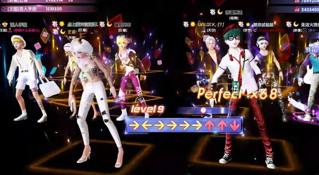 4、每首曲目均配备专业级编舞,支持好友互动竞技,休闲区场景更可进行深度社交互动;