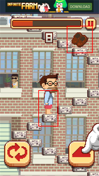 5、虽然基础操作简单,但随着高度增加游戏节奏会急剧加快,对反应速度的要求越来越高,极具挑战性,赶快下载体验吧!