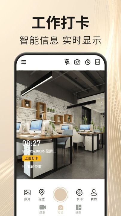 马上水印相机app是一款超棒的智能相机软件。它不仅能水印拍照、记录日常,还支持视频和图片的压缩处理。能自定义水印样式与模版,随心切换格式。在这里拍照,能让照片更出彩,体验别样玩法。它是服务大家的综合应用平台,提供丰富服务,专业相机图片内容超值得期待,特效滤镜超多,快来这里发布吧!