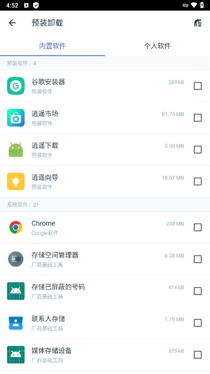 1、对系统内置应用进行卸载,释放手机存储空间,清除无用软件。2、使用应用搬家功能将软件转移到SD卡,有效节省手机内存。3、批量卸载应用程序,简化操作流程,节省操作时间,提高使用效率。