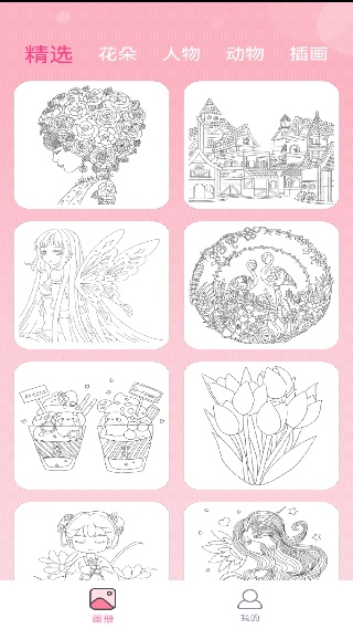 2.多种主题的精美填色图片任意选择,都是高清的手绘图片,能够自主选择喜欢的素材;
