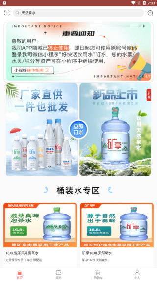 2、预订功能,可以让用户在线预指定水厂的桶装水;