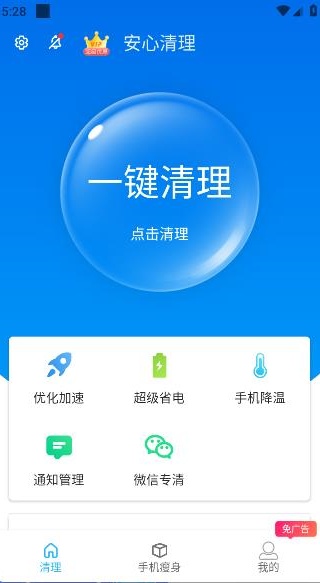 安心清理管家是一款超棒的安卓手机应用。它能清理手机缓存垃圾,加速手机运行,解决卡顿、内存不足等问题。各种品牌型号手机都兼容,装上就能用,无需联网,随时优化。内存不足会提前通知,点通知栏消息就能进,全盘扫描,彻底清除缓存,提升手机内存。