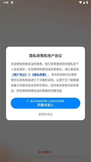 1、经常加油的朋友,可以来使用这款软件,然后点击同意;