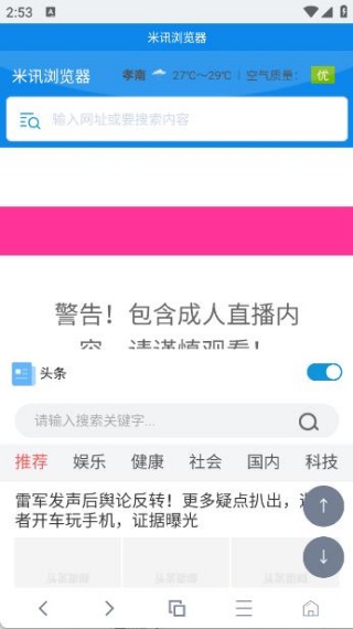 米讯浏览器app是一款超实用的手机浏览器软件。在这上面,你能轻松快速地搜索所需网址内容,只要直接输入网址就能开启搜索,迅速呈现网址对应内容,让你自由自在地浏览,轻松找到自己想要的东西。操作特别简单,输入网址或关键词,就能快速看到搜索结果。它还提供多个网站供你直接选择进入,尽情浏览。此外,会推送涵盖广泛领域的最新热门新闻,用户能自由挑选感兴趣的来阅读。有需要的赶紧来下载体验吧。