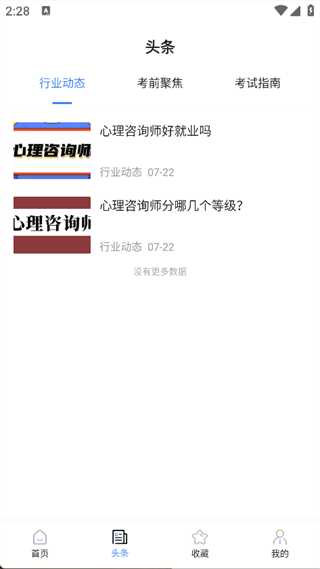 4. 点击首页下方的头条图标,即可看到各类行业新闻和考试指南等,可以按需阅读。