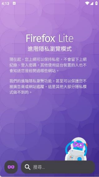 Firefox Lite客户端是款超轻便的手机浏览器,能满足咱日常上网需求。它最大亮点是占内存极小,才5m,用起来特轻松。别看安装包小,功能却一个不落。界面干净整洁,还能智能过滤弹窗、广告,上网超舒心。安卓版上网体验超流畅,小内存加无图模式,给你闪电般上网感受,快来下载试试!