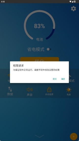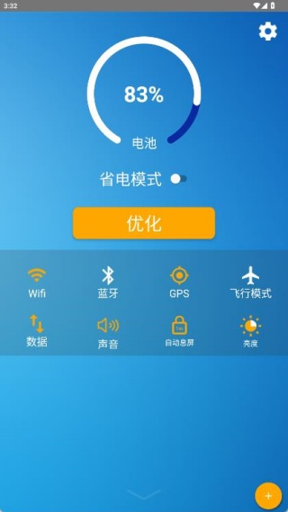 3、在应用主页可手动打开或关闭省电模式、蓝牙、wifi、数据流量、声音等设置