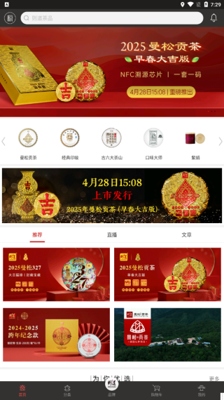 则道茶业app是一款专门卖各种茶叶的手机软件。它把不同茶叶分得很细,你只要上线挑喜欢的茶叶类别看看,就能轻松得到该类茶叶推荐,选好要买的下单,还有专属配送,超便捷省心。这app不仅有好多茶叶商品,还会不定期推品茶直播,看视频能学知识,也能在线浏览茶品文章。