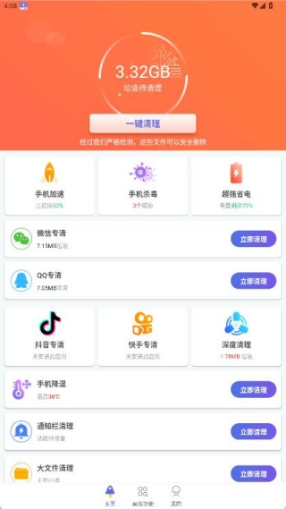 2、在主界面应用会自动扫描手机内存和系统缓存,快速释放无用文件,让手机运行更加流畅。