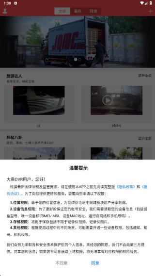 1、安装后进入,查看用户协议和隐私权限,点击同意;