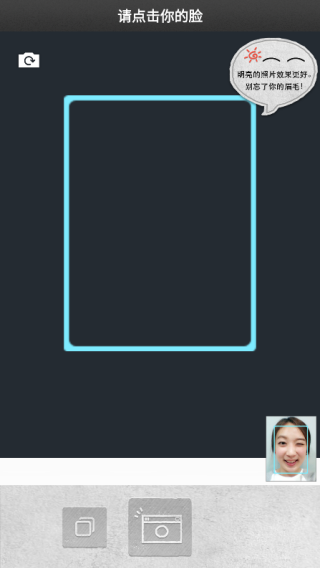 4、进入到拍照页面中,点击你的脸,然后进行拍照即会为你自动生成素描照片。