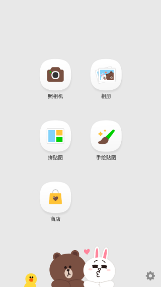 1、在首页中提供照相机、相册、拼贴图、手绘贴图和商店等功能;