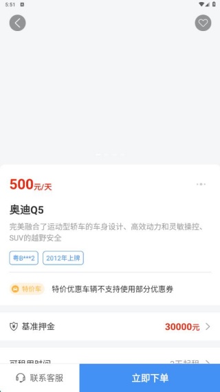 4、还能在线联系客服,了解租车价格,满意直接下单。
