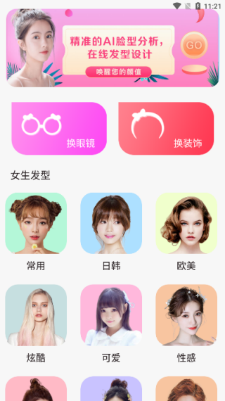 2、各种类型的发型都能快速尝试,轻松看到效果;