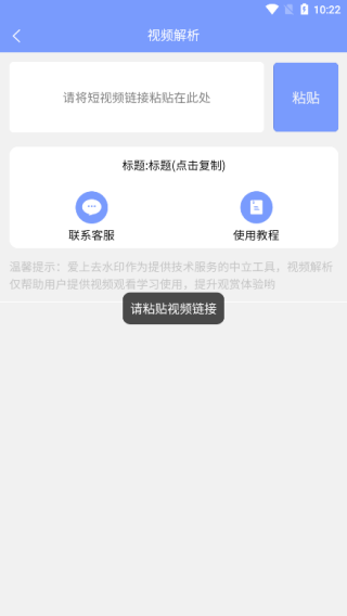 2、在视频解析页面中将短视频链接粘贴,然后进行一键解析即可;