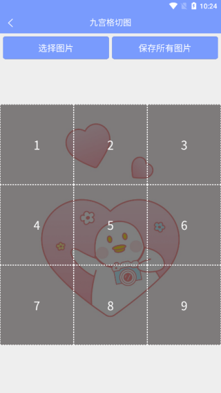 4、在九宫格切图页面中选择图片,然后进行九宫格切图进行保存即可。