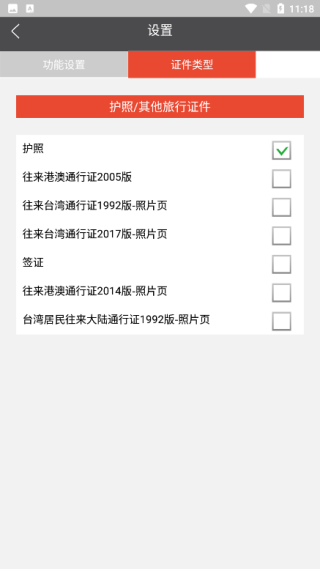 2、点击右上角的设置按钮,进入到证件类型中选择护照/其他旅行证件等内容;