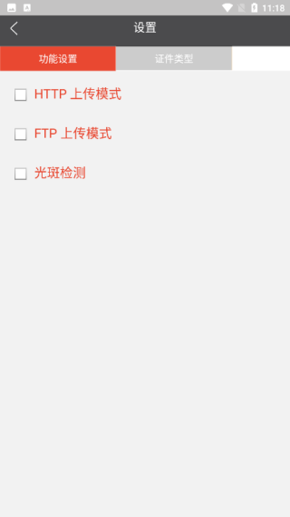 3、在功能设置中可以进行HTTP上传模式、FTP上传模式、光斑检测等功能;