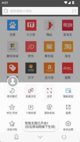 4、超丰富的功能模式,无痕浏览模式、夜间模式;