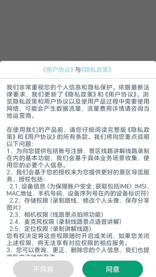 1、安装后查看用户协议和隐私政策,了解并同意进入;