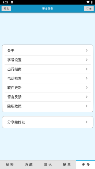 4、底部的更多板块,用户可以设置字号和电话抢票等多种功能。