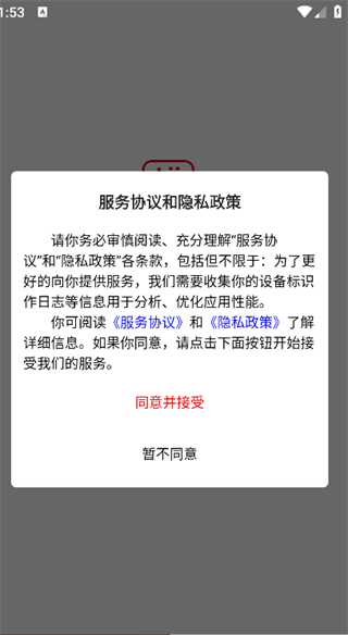 1. 下载并安装APP,点击‘同意并接受’,即可进入主页面;