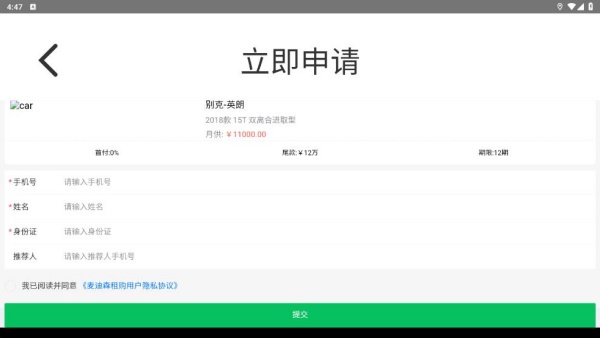 4、展示选车信息,让我们了解详情,合适立即申请即可;
