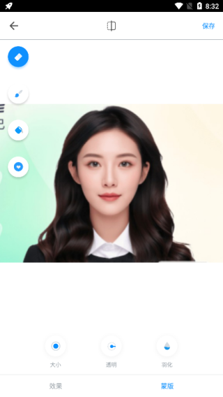 4、在蒙版中进行设置大小、透明度和羽化度等不同的参数。最后进行保存。