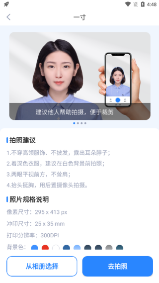 智能证件照制作可是一款超实用的软件,专门用来拍证件照。要是你着急用证件照,它能帮大忙。这里有各种各样的尺寸,不管你想要哪种证件照,都能在这找到。按照类型很快就能查到对应的规格,专业尺寸让你快速拍照,就算不知道尺寸也没关系哦。