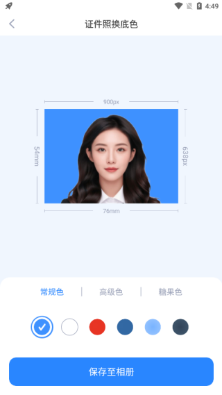 3、点击证件照换底色功能,选择需要更换的图片,然后进行选择对应的颜色进行保存即可;