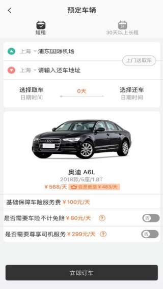 2、在租车页面了解各种详情,知晓多元化的租车服务;