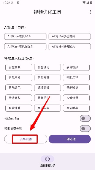 2. 进入软件主界面之后,点击“选择视频”,挑选出你想要处理的视频文件。
