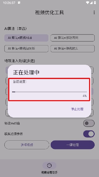 5. 系统会自动对视频进行优化,并且实时显示处理进度,完成之后便能直接预览以及保存成果。