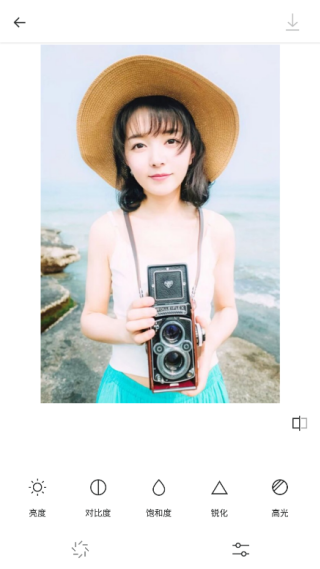 3、在编辑页面中可以进行调节亮度、对比度、饱和度、锐比以及高光等参数;
