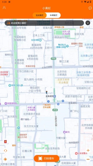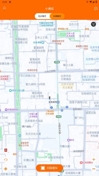 2、站点模式下可以找到停车、还车的地点,全部地点分布位置一目了然;