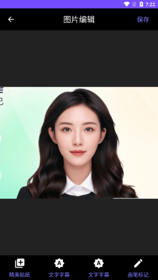 2、点击图片编辑,然后选择喜欢的精美贴纸、文字字幕和画笔标记进行使用即可;