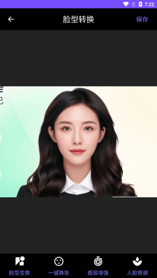 3、点击脸型转换,选择你喜欢相册中的图片,然后进行脸型变、一键换妆、面容增强和人脸微调的功能;