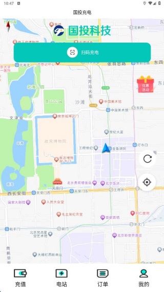 3、进入app在地图页面查找位置,轻松获取附近充电桩;