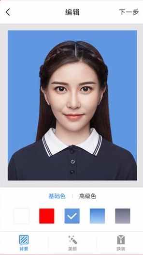 3、拍摄好后可以选择背景颜色,这里有基础色和高级色,然后进行美颜;