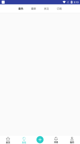 2、在发现页面中提供最新、最热、关注以及订阅的信息;