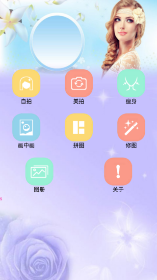 1、打开软件有自拍、美拍、瘦身、画中画、拼图、修图、图册等功能;