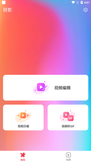 1、在编辑页面中提供了视频编辑、视频压缩、视频转GIF三大功能;