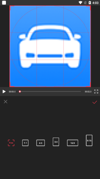 5、通过视频画面比例调整的方式,实现自定义编辑,其中包含固定比例和自定义比例;