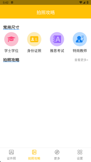 3、在拍照攻略页面中可以了解常用尺寸,还可以了解拍照攻略;
