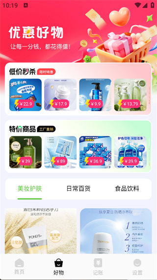 2. 点击页面下方的‘好物’,即可看到各类特价商品和低价秒杀商品;