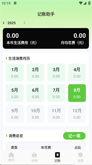 3. 点击页面下方的‘记账’,即可看到记账助手功能。