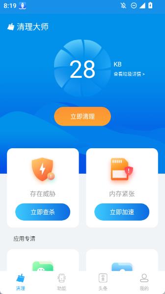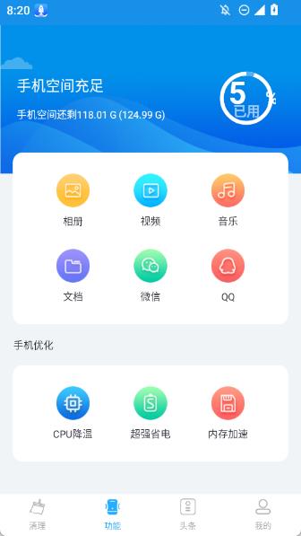 5g清理大师app简直太实用啦!它能帮咱清理手机垃圾,还有好多厉害的功能呢。像手机加速、软件管理、文件管理这些,能迅速释放手机空间,让手机跑起来超顺畅,再也不怕卡顿啦。在图片专清模块,能扫描所有相册,找出相似照片,一键批量选中,快速清理相册空间,告别无用相册的困扰。快来下载安装5g清理大师app吧!